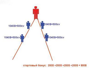человек привел 4-х человек на опцию 1040$. И он получит только по